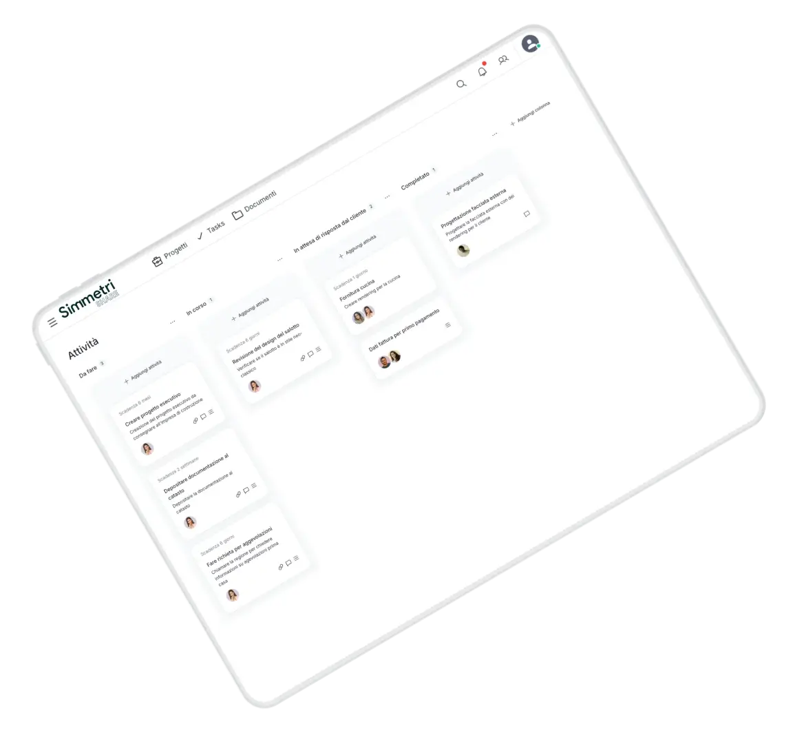 Ogni immobile o azienda disporrà del proprio sistema operativo, pensato per gestire l’intero asset da un’unica piattaforma. Il Simmetri del futuro sarà un sistema integrato nella tua azienda, progettato per supportarti nella gestione e ottimizzazione di tutti i processi